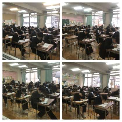 1月23日(木) 本日3年生は学年末テスト2日目、数学・社会のテストを受けています。テストにのぞむ姿勢は今日も真剣そのもの。頑張れ、3年生!