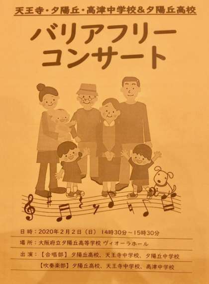 2月2日(日) 大阪府立夕陽丘高等学校において「バリアフリーコンサート」が行われています。