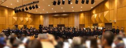 天王寺中学校・高津中学校・夕陽丘高校の吹奏楽の合同演奏「宝島」、そして最後に吹奏楽・合唱の合同で「故郷」の演奏がありました。