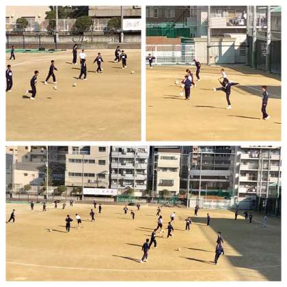 2月4日(火) 1年生の体育(男子)の授業はサッカーを行っています。パスの練習などをしていました。