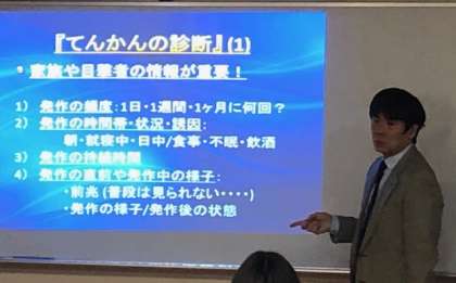 癲癇とは?、癲癇発作の原因や種類、癲癇の診断、発作に出会ったらどうすればよいかなど教えていただきました。