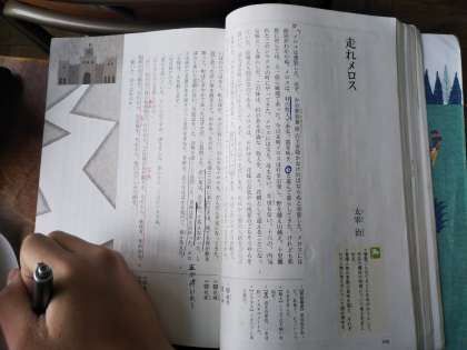 今日はクラスで「走れメロス」の朗読劇を行いました。