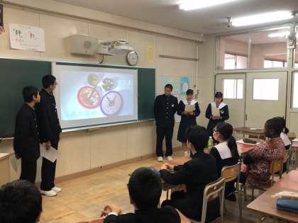 後半は各班に分かれてさまざまなテーマで日本について天王寺中学校の生徒から留学生に向けてのプレゼンテーションを行いました。