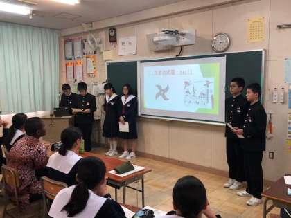 また、日本の遊びや忍者についての紹介なども行いました。どの班も一生懸命、分かりやすく説明していました。