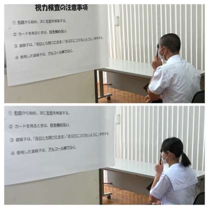 本日の登校日は、各学年で学校再開に向けた取り組みを行いました。3年生では視力検査、2年生はゼッケンの配付など、1年生では楽譜を見ながら天王寺中学校の校歌を何度も聞き、慣れ親しんでもらいました。6月からの学校再開に向けて、準備を進めています。