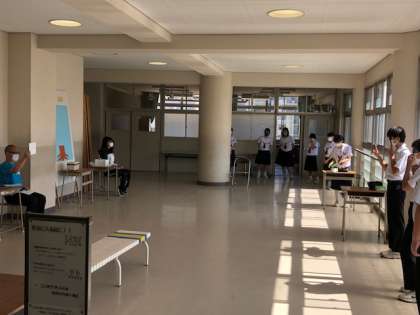 本日と明日で臨時休業中の登校日も終了します。本日も3年生では休業中における授業が行われ、特別教室での授業などがありました。発育測定なども行われ、通常に近い状態に戻りつつあります。今週末で臨時休業が終了し、いよいよ来週から学校が再開されます。6月1日から12日までは、1日3時間の授業となります。また、給食も始まります。6月1日から12日までの給食は基本的にパンと牛乳の提供になります。