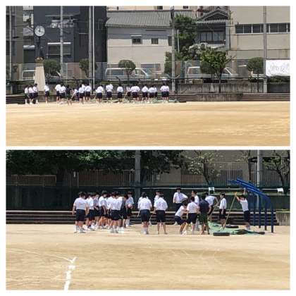 昨日はとても良い天気で、運動場での体育は、真夏の感じが漂っていましたが、みんな元気に幅跳びの練習を行っていました。