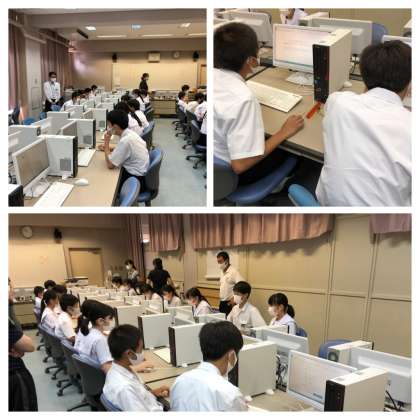 本日は、2年生の2クラスでリーディングスキルテストをPC教室で行いました。このテストは、文章の読み解く力をはかるためのテストで、自分の苦手な文章のタイプを知ることができます。そして、それを克服していくことで、文章を読み解く能力の向上を目指します。明日以降、2年生の残り2クラスを対象に行います。