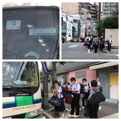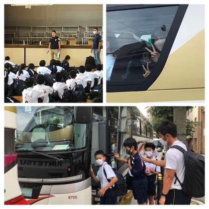 3年生は、午前7時に体育館に集合して、出発式を終え、合計8台のバスで。1年生は、午前8時15分に体育館に集合して、出発式を終え、合計4台のバスで。ともに元気に出発いたしました!!無事に行程を終え、充実した行事となるように頑張ってきてください!!