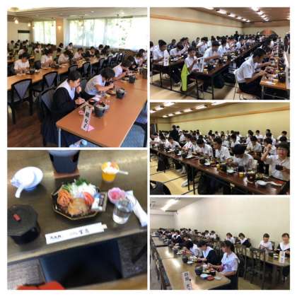 郡上市の大滝苑での昼食です。 バス内での休養も十分で、食欲旺盛!