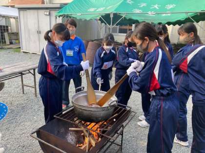 フォトウォークラリーを終えて、野外炊事が始まりました。みんなで一生懸命カレーを作りました!
