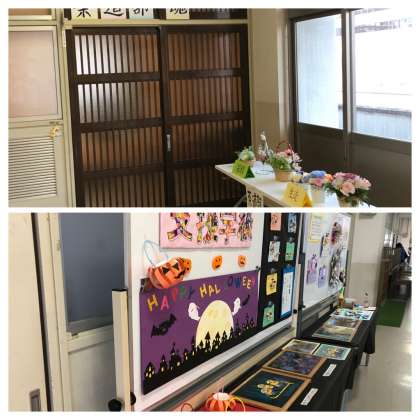 校舎前の小菊が今にも花を咲かせようとしており、明日の文化発表会を待ち望んでいるかのようです。