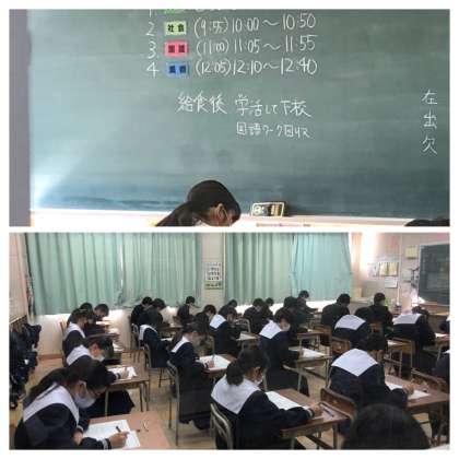 2学期の期末テストが行われています。昨日は、4時間、本日は3時間といつもより多い教科数で、準備も大変だったと思います。このテストを含めた2学期の成果を来月の期末懇談会で担任より報告させて頂きます。
