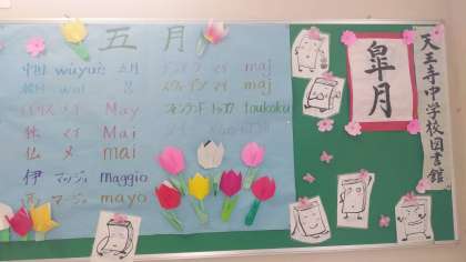今月の掲示板は「5月」をいろんな国の言葉で書かれています。