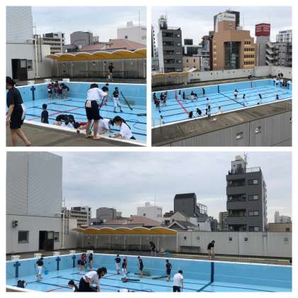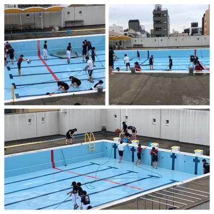 昨年度は実施できなかった水泳の授業ですが、今年度は実施する予定で、2年ぶりのプール清掃を行いました。様々な生物がいたり、水生植物が育っていたりと時間の経過を感じましたが、清掃が終わり、とてもきれいになりました。