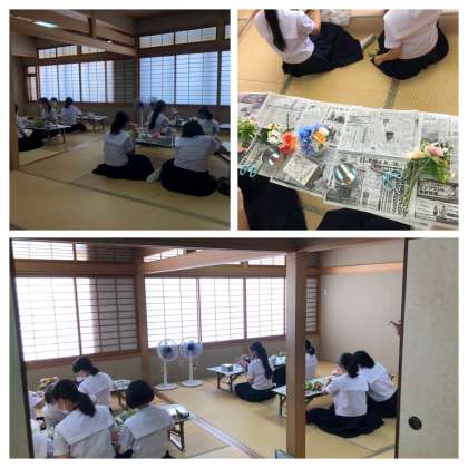 夏休みに入り、大会やコンクール、作品展など各クラブが目標に向かって活動をしています。写真は、昨日の吹奏楽部と茶道部の活動の様子です。