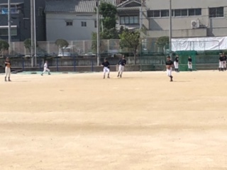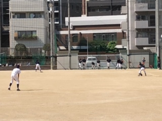 夏休み中の部活動の紹介です。本日は野球部です。3年生は引退をしましたが、初心者の多い後輩の練習を手伝うために、参加してくれています。