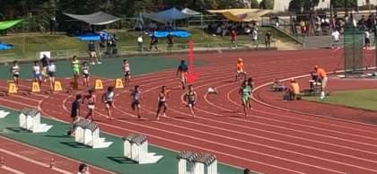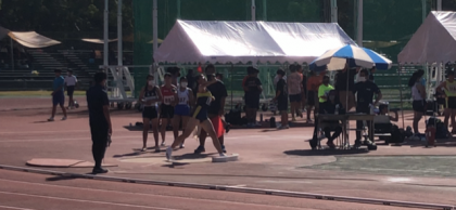 本校からも出場してしている種目である、2年女子砲丸投と3年男子100mの様子です。