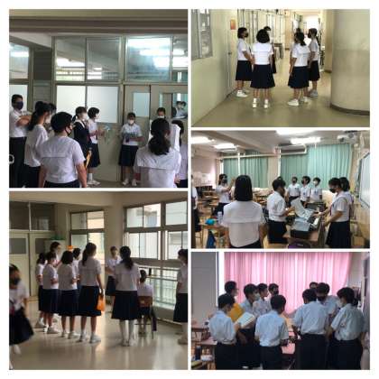 音楽コンクールの練習風景です。来月の文化発表会・音楽コンクールに向けての練習が始まりました。マスクをつけながらの合唱ですが、元気のよい声が響いています。