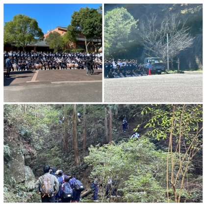 昼食を終え、学年全体写真・学級写真を撮りました。今、Go to 展望台!が始まりました。みんなで力を合わせ山に登ってきます。険しい〜