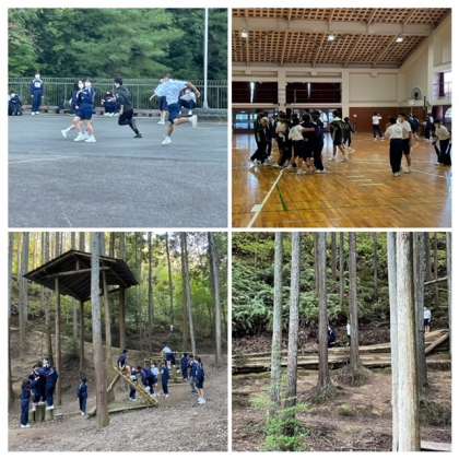 ……が、皆元気で、鬼ごっこにアスレチックにバスケットボールと思い思いに遊んでいます。若い先生たちも元気に鬼ごっこに参加してます。