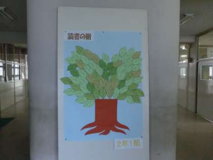 さて、前回ご紹介しました各クラスの「読書の樹」も春の訪れにあわせて、成長してきました。短い期間にこれだけの読書活動が進められました。スペースの関係で全クラスを紹介できませんが、どのクラスも立派な「読書の樹」が育っています。