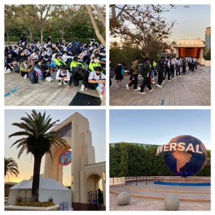 今からリーベルホテルまで歩いて行きバスに乗ります。6時15分学校到着予定です。