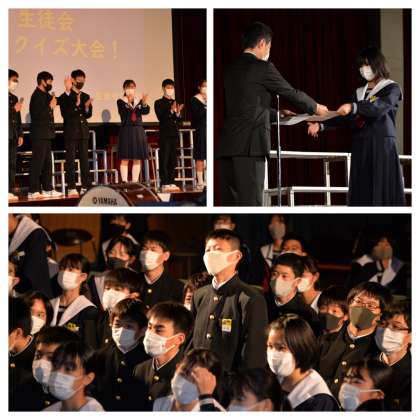 最終日の本日は、3年生の金賞クラスの発表から始まりました。圧倒的なハーモニーに会場は包み込まれました。そして、吹奏楽部、合唱部と続き、2年生の音楽コンクール。2年生はまだ、自由曲を経験していないので、来年は是非、課題曲だけでなく自由曲も歌える状況になってもらいたいです。最後は生徒会クイズで締めくくられました。いよいよ生徒会も3年生からバトンが渡される時期になりました。3日間にわたる文化発表会・音楽コンクールでしたが、来年がまた楽しみになりました。