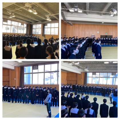 本日の3限目、3年生の学年集会が行われました。進路の話の後、3学期からお休みに入られる先生に今までの感謝の気持ちを込めて、委員長たちが中心となりサプライズの全員合唱をしてくれ、事前にみんなで仕上げた寄せ書きなどを渡していました。生徒たちが中心となり、本当に心温まる時間を過ごすことができました。ありがとうございました。