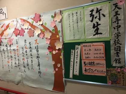 3月です。図書館の掲示板も「弥生」の掲示となっています。明日は公立高校一般選抜の入試、そして3日後には、卒業式が控えています。3月とはそういう時期なのですね。