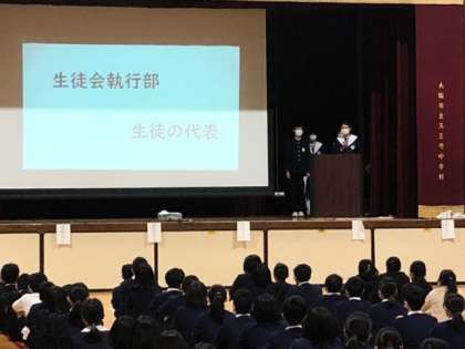 今日の午後から、4月に入学する新入生が集まり、国語と算数のテストを受けました。また、そのあと、天王寺中学校の生徒会執行部による学校紹介を行い、新入生に中学校生活の一部を披露しました。4月5日が入学式です。