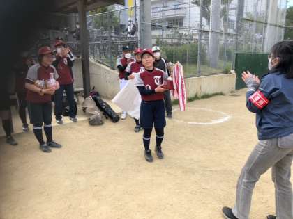 本日、天王寺区PTA女子ソフトボール(春球会)が行われました。1回戦は桃陽小との対戦で勝利し、勢いに乗って、2回戦の五条小との対戦も突破。いよいよ決勝の夕陽丘中学校との対戦は、手に汗握る展開の中、12対11でからくも勝利し、見事に春球会連覇を達成しました。今大会を通して、この女子チームはチームワークの良さが際立っていました。たくさんの方の応援を背に受けての優勝で喜びもひとしおでした。応援をいただいた皆様にお礼申し上げます。