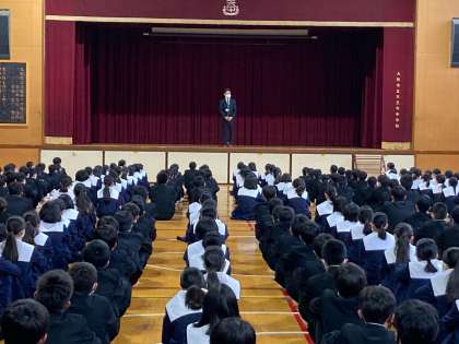 本日の全校集合では、校長先生のお話の後、生徒会役員認証式が行われました。