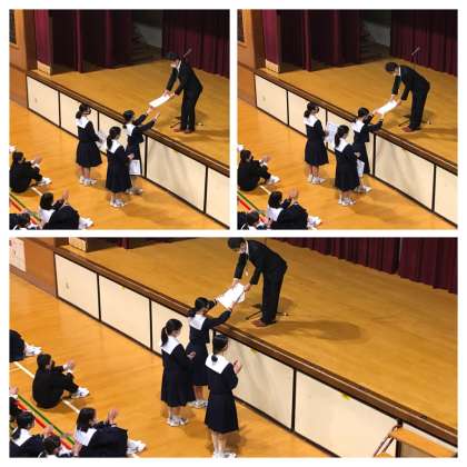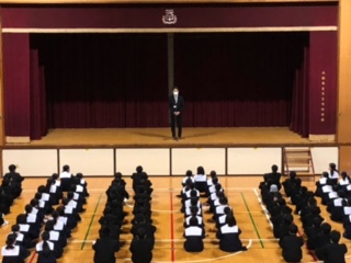 本日の全校集会で、剣道部の表彰がありました。昨日、行われた春季総体ブロック大会で剣道部の女子が優秀な成績を収めたことによるものです。