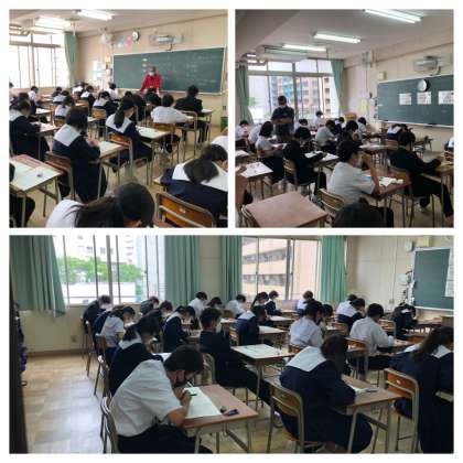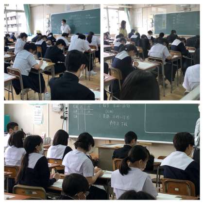 昨日、本日と今年度最初の定期テストである1学期中間テストが実施されました。1年生にとっては、初めての定期テストで中学校のテストにこれから慣れていってください。3年生は、いよいよ受験の年となりました。自分なりの努力を進めていってください。