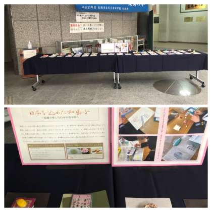 写真は玄関付近に展示している美術の作品です。展示物もどうぞご覧ください。