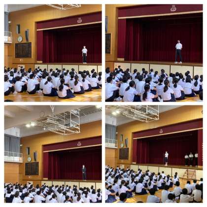 本日の全校集会で、生徒会専門委員会報告がありました。前期の生徒会がそれぞれの委員会で決定した月の目標を全校生徒に伝えました。それぞれの目標が達成できるように協力をおねがいします。