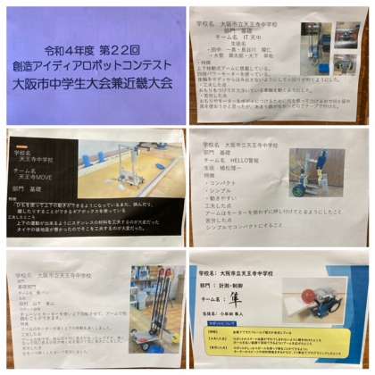 本日、淡路中学校にて第22回創造アイディアロボットコンテスト大阪市中学生大会兼近畿大会が行われました。