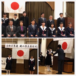 今年度の税の作文は全国の中学校6595校から460918編の作文が寄せられたとのことです。天王寺区内では1558編の応募があり、本校からは2名の生徒が表彰されています。