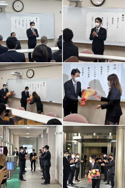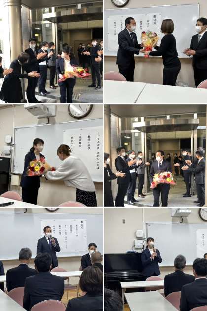 校長先生と2名の先生の計3名が4月より大阪市教育委員会事務局への異動が決まり、多くの教職員の方々やPTA役員の皆様に見送られ、天王寺中学校を去られました。