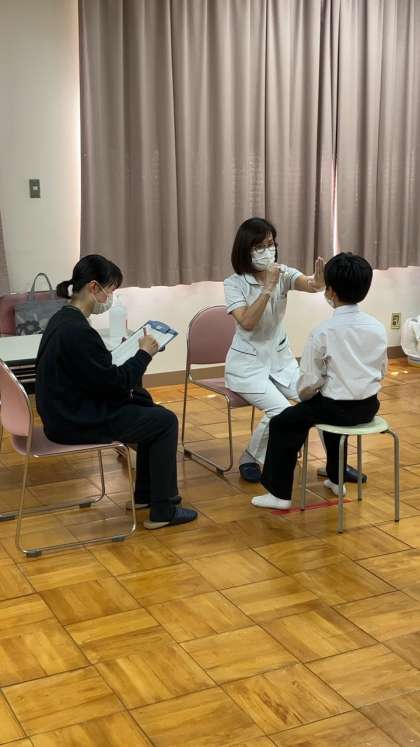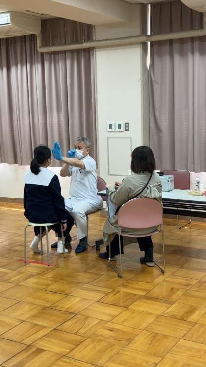 本日午後より、多目的室にて1年生の眼科検診が行われました。