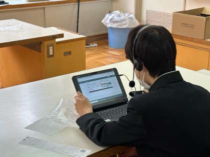 本日は、3年生が全国学力・学習状況調査の英語「話すこと」調査の実施日となっています。