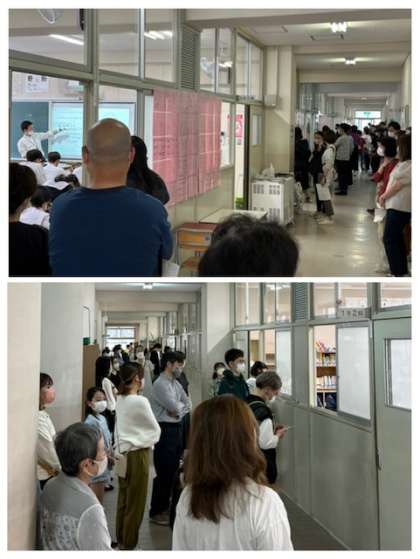 本日は土曜授業となっております。1限と2限は参観となっており、多くの保護者の方に来校していただいております。