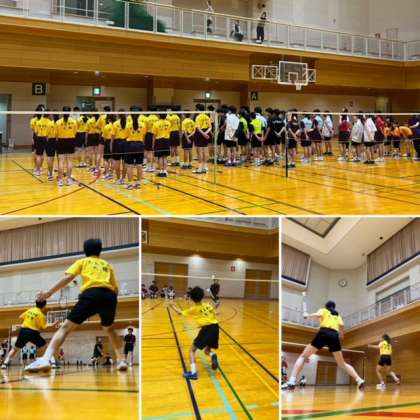 天王寺中学校バドミントン部は、同じ中学生の夕陽丘中学校バドミントン部と複数の団体チームでリーグ戦を行いました。一日中試合をしていた