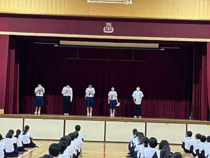 6月22日(木)、2年生の学年集会では、保健委員の人たちが、熱中症予防の寸劇と呼び掛けを行ってくれました。