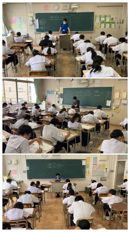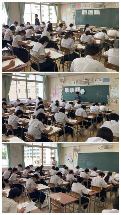 1限目は1・2年生は英語、3年生は理科のテストに取り組んでいます。