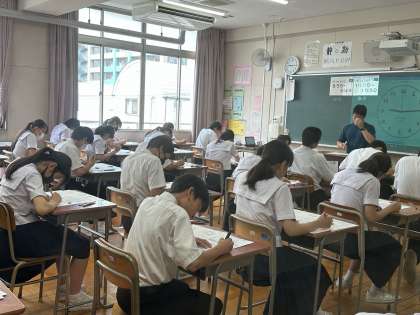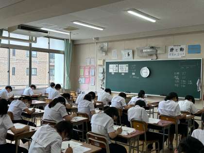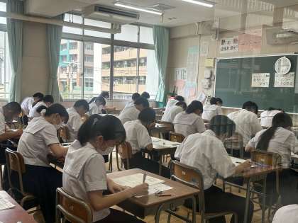1学期の期末テストが本日で終了しました。これまでの学習の成果を発揮することができたでしょうか。このあと、本格的な夏を迎え、部活動等も活発になると思いますが、熱中症には気を付けて、こまめな水分補給と、気分が悪いときは無理をしない事を心がけてください。