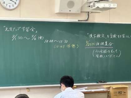 本日より、夏休みの「元気アップ学習会」が始まりました。8月1日(火)〜4日(金)の4日間にわたって、漢字検定対策学習会と夏の課題対策学習会を行っています。漢字検定は8月23日に実施予定ですので、合格に向かって努力を重ねてください。