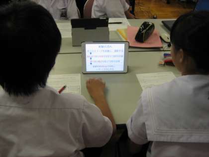 1年3組は「音による現象」 2年1組は「燃焼による実験」の内容で、研究授業を行いました。大阪市からたくさんの先生が見に来られましたので、生徒は、ちょっと緊張気味の様子でした。