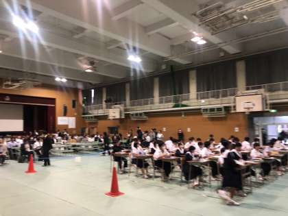 1年5組がモデルクラスとなり200人を超す大阪市の社会科の先生方のなか、本校社会科教員による授業が行われました。生徒たちは、緊張も大いにあったと思いますが一人ひとりが自分の意見をしっかりとまとめ、発表することができていました。